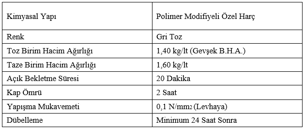 Çimento esaslı polimer takviyeli yüksek yapışma gücüne sahip seramik yapıştırma harcıdır.