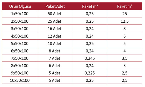 10-12 kg/m³-30 kg/m³ arası yoğunluklarda